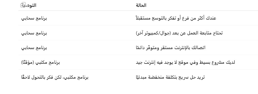 🔍 أولاً: ما الفرق بين البرنامج السحابي والمكتبي؟