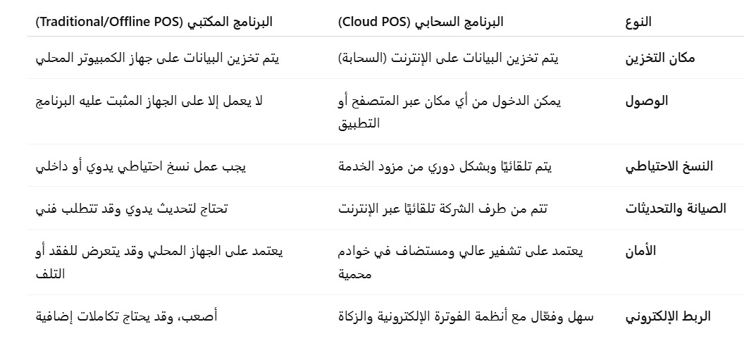 🌐 مميزات البرنامج السحابي (Cloud POS)