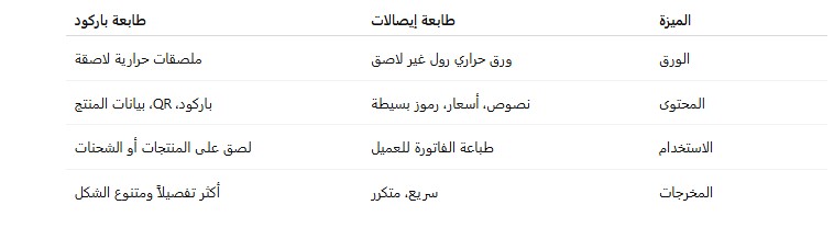 • الاستخدام: طباعة ملصقات تحتوي على باركود، أسعار، أو معلومات منتج