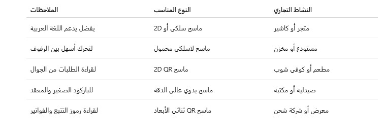 🛍️ كيف تختار ماسح الباركود المناسب حسب النشاط؟